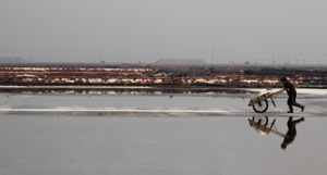 趙連春 風(fēng)霜雪雨五十年,煮海英雄勇斗天。今朝鹵蕩鹽花放,銀山蜿蜒百里灘。...