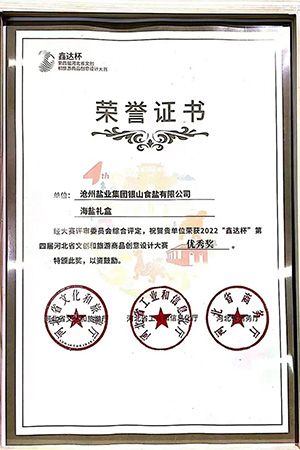 本次大賽由河北省文化和旅游廳、河北省工業(yè)和信息化廳、河北省商務廳聯(lián)合舉辦,自2022年4月開始啟動。為了提升公司產(chǎn)品影響力,提升品牌形象,銀山食鹽有限公司積極準備,確定以滄鹽牌“海鹽禮盒”為參賽作品。宣傳部配合銀山公司精心準備,專門派出姬曉曼全程參與設計和路演。初賽采取網(wǎng)絡投票、視頻介紹的方式進行。滄鹽牌“海鹽禮盒”經(jīng)過層層選拔篩選,與其他7件作品從全市眾多參賽作品中脫穎而出,代表滄州市入圍河北省文創(chuàng)和旅游商品創(chuàng)意設計大賽決賽。2022年12月14日,第四屆河北省文創(chuàng)和旅游商品創(chuàng)意設計大賽決賽在石家莊以視頻會議加網(wǎng)絡直播的形式舉行,選手通過網(wǎng)絡進行路演,評審線上進行打分。最終,滄鹽牌“海鹽禮盒”榮獲河北省文創(chuàng)和旅游商品創(chuàng)意設計大賽優(yōu)秀獎、滄州市文創(chuàng)和旅游商品設計大賽創(chuàng)新創(chuàng)意獎。
