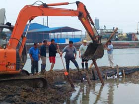 災(zāi)情發(fā)生后,公司干部職工沖上前線,自29日開始,制鹽一、二場(chǎng)地勢(shì)低洼灘副的駁鹽溝、導(dǎo)水路水位相續(xù)開始漫堤,各場(chǎng)班子親自帶隊(duì),組織場(chǎng)突擊隊(duì)立即進(jìn)行長(zhǎng)埝擋水,在風(fēng)雨中砸樁、護(hù)埝,多日奮戰(zhàn)在抗災(zāi)一線。在整個(gè)強(qiáng)降雨過(guò)程中,灘內(nèi)溝埝局勢(shì)多次告急,排淡溝道水位持續(xù)上漲,鹽碼安全岌岌可危,公司防汛辦晝夜巡查汛情,多次下令各制鹽場(chǎng)要統(tǒng)一行動(dòng),令行禁止,在供電處的大力配合下有序排水,各制鹽隊(duì)都從大局出發(fā),自覺定時(shí)關(guān)閉一切強(qiáng)排水泵。汛情關(guān)鍵時(shí)刻,公司防汛辦結(jié)合鹽業(yè)裝備制造廠緊急調(diào)用兩臺(tái)挖掘機(jī)坐陣一場(chǎng)、二場(chǎng)、制鹵場(chǎng),做好危埝的加固長(zhǎng)高和疏通排淡工作,并及時(shí)貫通一、二場(chǎng)排淡系統(tǒng),對(duì)二場(chǎng)過(guò)高的警戒水位進(jìn)行有效的疏導(dǎo)。制鹽三場(chǎng)、制鹵場(chǎng)也及時(shí)組織人員,對(duì)儲(chǔ)鹵汪子土埝出現(xiàn)潰溢的地段進(jìn)行了排險(xiǎn)加固。災(zāi)情牽動(dòng)著各級(jí)領(lǐng)導(dǎo)的心,在險(xiǎn)情最危急時(shí)刻,董事長(zhǎng)劉建軍夜間來(lái)到現(xiàn)場(chǎng)巡視災(zāi)情,慰問(wèn)職工,指導(dǎo)救災(zāi)工作;公司防汛指揮部成員也來(lái)到汛情嚴(yán)重的制鹽一、二場(chǎng)參與搶險(xiǎn)工作;鹽業(yè)裝備制造廠、供電處、供應(yīng)處、筑裝處按照公司防汛指揮部統(tǒng)一安排,出動(dòng)70余人組成的搶險(xiǎn)突擊隊(duì)冒雨和二場(chǎng)全體干部職工一起搶險(xiǎn)救災(zāi)。在整個(gè)抗災(zāi)搶險(xiǎn)過(guò)程中,全公司先后投入編織袋32500條,木樁3186根,人工護(hù)埝20190米,動(dòng)用機(jī)械設(shè)備護(hù)埝10220米,清淤場(chǎng)區(qū)周邊堵卡地段17處。